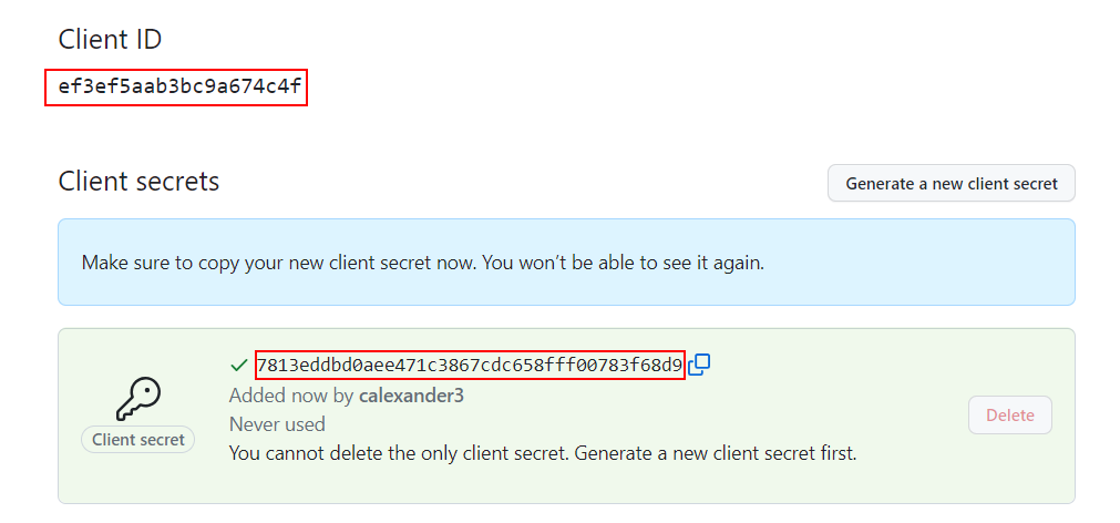 After you create the application, to create a new secret, click **Generate a new client secret**.