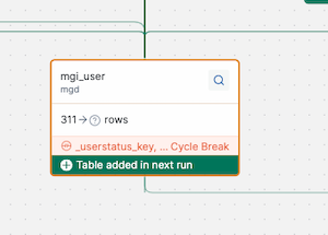 * The table details panel also indicates that there is a cycle break and lists the affected columns.