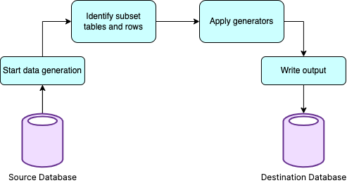 When [subsetting](https://docs.tonic.ai/app/generation/subsetting) is enabled, Structural first identifies the tables and rows to include in the subset. It uses the configured table modes and generators to transform the data. It then writes the transformed data to the destination location.