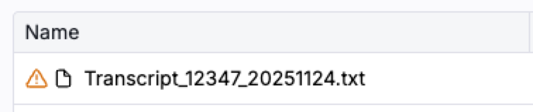 When a file needs to be rescanned, a warning icon displays in front of the file name.