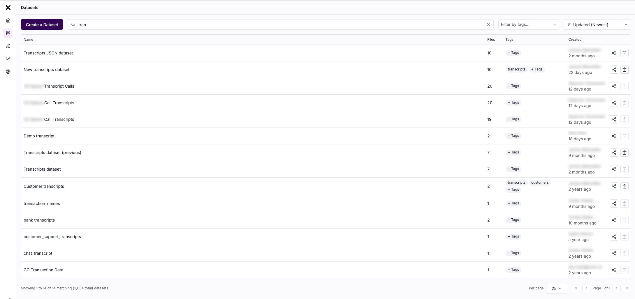 On the Datasets page, to filter the datasets by their assigned tags: