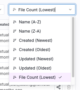 The list of files in the dataset. For a cloud storage dataset, where the files can be located across multiple folders, Textual navigates to the first folder that contains selected dataset files.