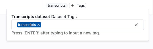 2. On the dataset tags panel, to create a new tag, type the tag text, then press Enter.\