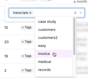 <figure><img src="https://3072847115-files.gitbook.io/~/files/v0/b/gitbook-x-prod.appspot.com/o/spaces%2FvOPn7KQptPWmS5iKg5P0%2Fuploads%2FDxYnOiG1rgZAWWk0QAY7%2FDatasetsTagsDropDown.png?alt=media&#x26;token=16f31068-75c2-4777-a375-f9aad668298e" alt=""><figcaption><p>Dropdown list of existing tags to assign to a dataset</p></figcaption></figure>