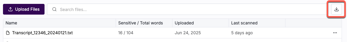 Download all files icon on the dataset file list For datasets that generate redacted versions of the source files, the download happens immediately.